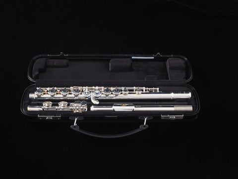 Yamaha 200ADII Flute, Used . Key of C, closed hole, silver plated, C foot, offset G. Includes original Yamaha case in superb condition and cleaning rod. Excellent condition.
