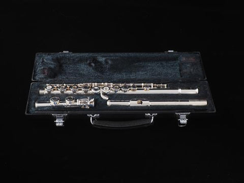 Yamaha 361 Open Hole Flute, Used . Key of C, solid silver headjoint, silver plated body and foot, open hole, offset G, C foot, includes original Yamaha case in nice condition and cleaning rod. Made in Japan. Excellent condition.